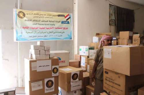 سلّم رئيس القيادة المحلية للمجلس الانتقالي الجنوبي بمديرية القطن بمحافظة حضرموت، محمد حسين الحداد، اليوم الأحد، مدير مكتب الصحة والسكان بالمديرية، القائم بأعمال مدير مستشفى القطن العام، الدكتور فتحي بهيان، والدكتور عادل جمعان بن سويد مدير مستشفى الحياة العام الدفعة الثانية من المساعدات الطبية المقدمة من دولة الإمارات العربية المتحدة، بحضور الأستاذ عبداللطيف محمد النقيب مدير عام المديرية القطن.