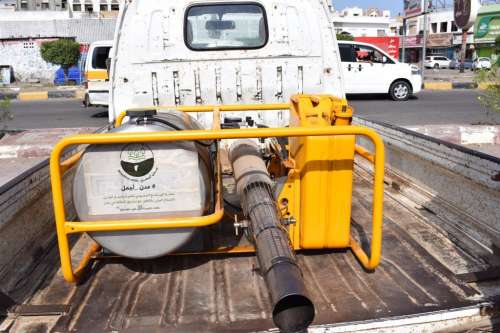 دشن وكيل محافظة عدن عبدالفتاح القطيبي و مدير صندوق النظافة المهندس قائد راشد اليوم حملة الرش الضبابي الضبابي لمكافحة البعوض بمديريات محافظة عدن .