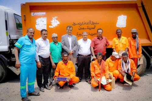 كرم محافظ عدن الاستاذ احمد حامد لملس ومعه مدير عام صندوق النظافة والتحسين بعدن المهندس قائد راشد اليوم 5 من عمال النظافة اللذين عثروا على لغم متفجر وضع بين اكوام القمامة وعامل اخر عثر على عقد ذهب يقدر ب 400 الف ريال بمديرية صيرة قام باعادته إلى صاحبه.