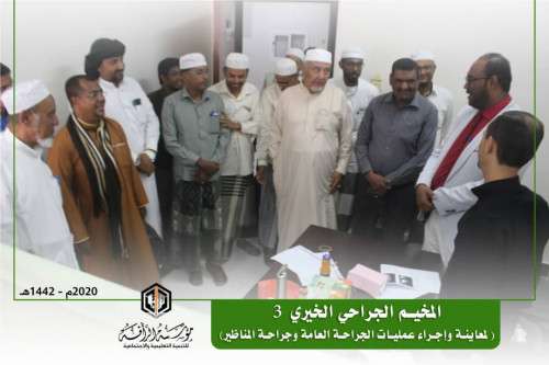 دشن مدير عام مديرية تريم المستشار القانوني خالد عوض هويدي صباح هذا اليوم الاربعاء 20 صفر 1442هـ الموافق 7 أكتوبر 2020م المخيم الجراحي الخيري الثالث لمعاينة وإجراء عمليات الجراحة العامة وجراحة المناظير بمستشفى عيديد الخيري .