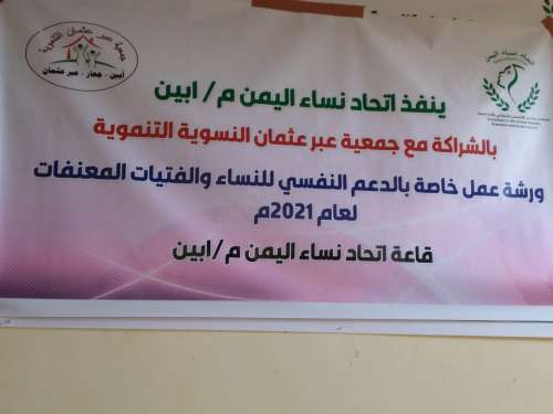 نفذت جمعية عبرعثمان النسوية التنموية في صباح يوم الثلاثاء ورشة عمل خاصة بالدعم النفسي للنساء والفتيات المعنفات في مقر اتحاد نساء اليمن فرع أبين.
