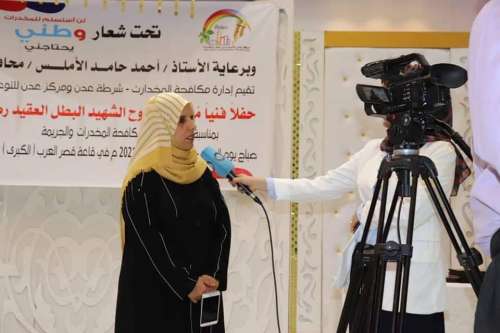 كما ذكرت الاستاذة سعاد علوي رئيس مركز عدن في كلمتها مآثر البطل الشهيد فضل صائل وما قدمه في سبيل خدمة وطنه ضد تجار المخدرات . وعن دور المركز الذي يقدم خدماته منذ مايقارب من عقد من الزمان ..