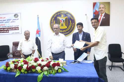 وفي ختتام الورشة قام الأستاذ فضل الجعدي نائب الأمين، والدكتور عبدالله الحو عضو الهيئة الوطنية للإعلام الجنوبي، رئيس قطاع التدريب والتأهيل، والدكتور باسم منصور رئيس الدائرة الإعلامية، بتوزيع الشهادات على المشاركين الذين عبروا عن سعادتهم بإقامة مثل هذه الورش التدريبية التي تعمل على تعزيز قدرات الكوادر الإعلامية في القيادات المحلية للمجلس في المحافظات.