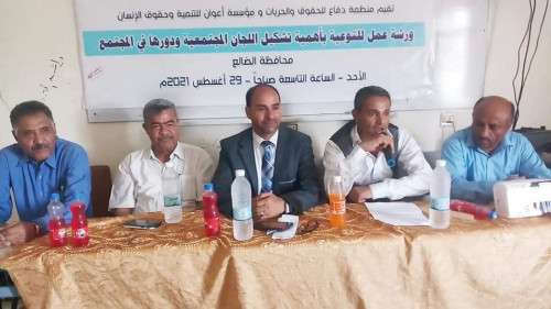 وهدفت ورشة العمل التي يشارك فيها 36 مشاركاً ومشاركة من اللجان المجتمعية ومنظمات المجتمع المدني والقانونين في المحافظة إلى تسليط الضوء حول أهمية اللجان المجتمعية على مستوى المديريات والمراكز والاحياء في كافة المهام التي تدخل في اختصاصها سواء كان في جانب حل الخلافات او المنازعات بين المواطنين وإرساء مبدأ التعايش السلمي المجتمعي.