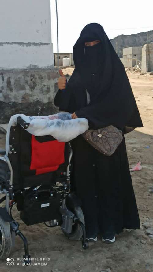 كما أشادت بجهود مدير عام مديرية البريقة، فهمان عطيري، في تسهيل حصول المعاق على هذا الكرسي، وتعاونه مع الجمعية وكافة أعمالها الإنسانية والتنموية في المديرية.