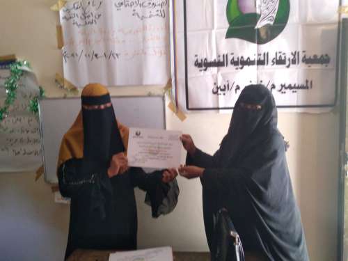 في إطار الأنشطة والبرامج التي تنفذها جمعية "الارتقاء " النسوية التنموية بمنطقة المسيمير بمديرية خنفر بمحافظة أبين اختتام دورتها تدريبية في مجال فن الخياطة والتفصيل بمشاركة "20" إمرأة وفتاة إستمرت لمدة "12" يوما في مقر الجمعية بمنطقة المسمير فعاليات الدورة التدريبية بالتعاون مع الصندوق الاجتماعي.