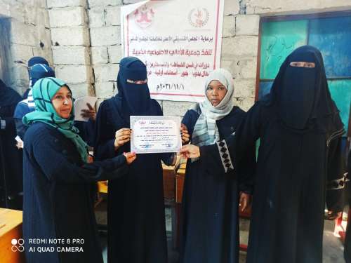 وخلال الحفل الختامي ، باركت مديرة الشؤون الاجتماعية بانتقالي ابين ، الاستاذه جيهان حيدرة ، نجاح الدورة التدريبية لجمعية الاماني الاجتماعية الخيرية ، والتي استهدفت 45 متدربة .