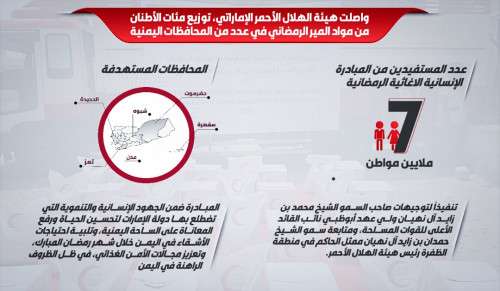 المبادرة ضمن الجهود الإنسانية والتنموية التي تضطلع بها دولة الإمارات لتحسين الحياة ورفع المعاناة على الساحة اليمنية، وتلبية احتياجات الأشقاء في اليمن خلال شهر رمضان المبارك، وتعزيز مجالات الأمن الغذائي، في ظل الظروف الراهنة في اليمن.