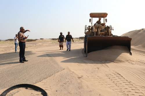 تواصل الفرق الفنية بإزاحة كثبان الرمال من خط عمران المخا الرابط بين الساحل الغربي والعاصمة عدن وذالك بتمويل ذاتي من صندوق صيانة الطرق والجسور المركز الرئيسي-العاصمة عدن.