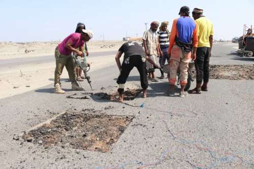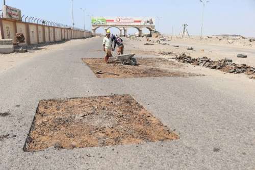 باشرت الفرق الفنية التابعة للمؤسسة العامة للطرق والجسور وبتمويل ذاتي من صندوق صيانة الطرق والجسور المركز الرئيسي-العاصمة عدن بعملية صيانة الحفريات المتهالكة من خط العلم دوفس بمحافظة أبين.
