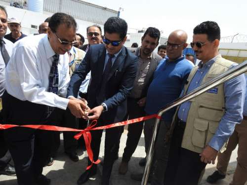 بالسيد محمد عثمان اكرم المدير القطري لمكتب الUNOPS عمان وفياض أحمد رسول مدير مكتب الامم المتحدة لخدمات المشاريع UNOPS في اليمن وخلدون سالم صالح مستشار البرامج لمشاريع مكتب الامم المتحدة لخدمات المشاريع ( UNOPS) بتسليم العيادات المتنقلة بحضور وكيل وزارة الصحة والسكان لقطاع التخطيط والتنمية الصحية الدكتور أحمد الكمال.