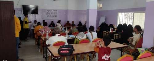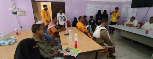 ثم قام أعضاء مركز خنفر للتوعية بتوزيع البروشرات التي أعدها مركز عدن للتوعية من خطر المخدرات وتناوب أعضاء الفريق على التوعية للحاضرين من خطر المخدرات .