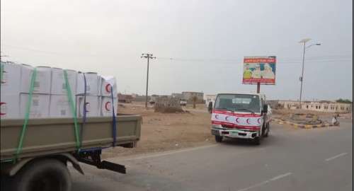 سيرت هيئة الهلال الأحمر الإماراتي قافلة إغاثية لأهالي باب المندب، تحت شعار (الإنسان أولا) مقدمة من دولة الإمارات العربية المتحدة.