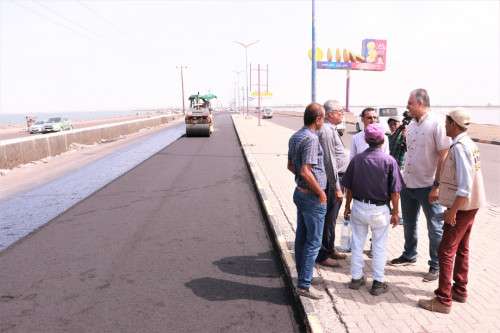 وجاء ذلك أثناء نزوله لتفقد سير العمل بالخط البحري حيث تجري أعمال سفلتة واسعة بتمويل حكومي عبر صندوق صيانة الطرق والجسور المركز الرئيسي-العاصمة عدن.