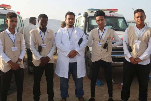 هذا ومنذ ساعات الصباح الأولى توزعت فرق الإسعافات الأولية على المواقع من فندق مكه ومحطة الستين وحتى المنصة كما قامت فرق التنظيم بتنظيم خط سير سيارات الإسعاف من ازدحام المواطنين اثناء الفعاليات ومارافقتها المتوجه لنقل الحالات الطارئة لمستشفى ابن سيناء العام .
