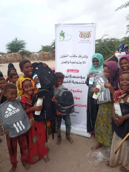 بحضور مدير عام الوحدة التنفيذية لإدارة مخيمات النازحين بمحافظة أبين الاخ أنيس اليوسفي ومدير عام مديرية زنجبار الاخ غسان شيخ وممثل مكتب الشؤون الاجتماعية والعمل الاخ جميل بامهيد نفذت مؤسسة نماء التنموية مشروع الحقائب المدرسية والمستلزمات الدراسية للطلاب النازحين وطلاب المجتمع المحلي الأشد فقرا، وتوزيع مواد صحية للنازحين في إطار البرامج والأعمال الإنسانية التي تنفذها المؤسسة ضمن المشاريع السنوية ..