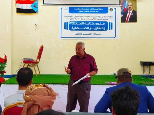 نظم قطاع التدريب والتأهيل بالهيئة الوطنية للإعلام الجنوبي، اليوم الثلاثاء 20 سبتمبر، دورة تدريبية في مجال كتابة الأخبار والتقارير الصحفية، بمشاركة 30 متدربا من إعلاميي محافظة سقطرى.