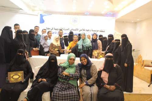 بحضور قيادة مؤسسة وجود للامن الانساني وبمشاركة (25) من قيادات منظمات المجتمع المدني من محافظات (عدن - لحج- تعز) تحتفي مؤسسة وجود للأمن الانساني باختتام تكريمي الدورة تدريبية بمجال " الرصد والتوثيق حول العنف القائم على أساس النوع الاجتماعي .