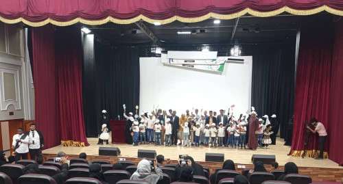 وتخللت فقرات الحفل انشودة غنائية وأوبريت و مشهد تمثيلي يحكي واقع المكفوفين نال اعجاب واستحسان الحاضرين .