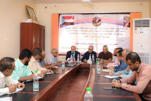 وألقى خلال الاجتماع الدكتور يحيى شائف الجوبعي، رئيس منسقية المجلس الانتقالي، جامعة عدن، كلمة رحب فيها بحضور الأستاذ فضل الجعدي، مستعرضاً عددا من النقاط العملية المهمة للمنسقية وبرامجها المختلفة.