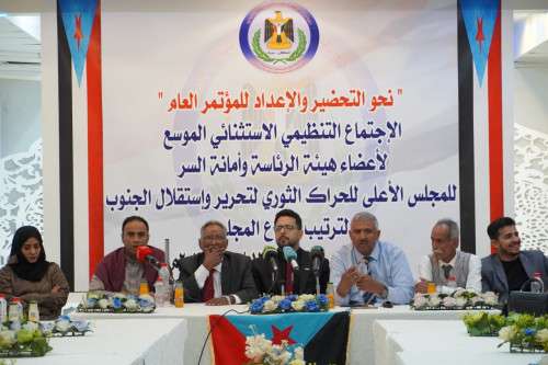 بدعوة من نائب رئيس المجلس وأعضاء هيئة الرئاسة وأمين سر المجلس وفقاً للائحة التنظيمية عقد اليوم في العاصمة عدن الاجتماع التنظيمي الاستثنائي الموسع لأعضاء هيئة الرئاسة وأمانة السر بالمجلس الأعلى للحراك الثوري لتحرير واستقلال الجنوب، لترتيب أوضاع المجلس.