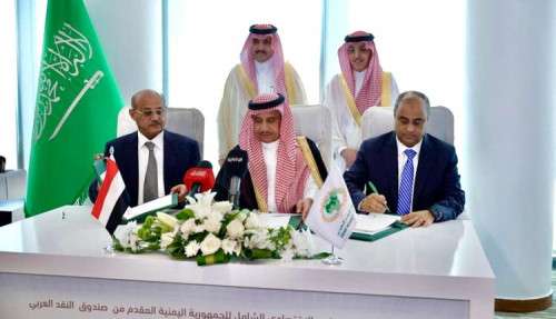 وقع الاتفاق وزير المالية سالم بن بريك، ومحافظ البنك المركزي اليمني أحمد غالب المعبقي، والمدير العام رئيس مجلس إدارة صندوق النقد العربي الدكتور عبدالرحمن الحميدي، بحضور وزير المالية السعودي محمد الجدعان، وسفير المملكة المشرف العام للبرنامج السعودي لتنمية واعمار اليمن محمد آل جابر.