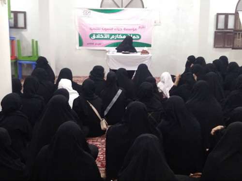 نفذت مؤسسة حواء النسوية للتنمية محاضرة أسبوعية متتالية ضمن برنامج حملة ( مكارم الأخلاق ) تحت عنوان " الصدق في مراقبة الله " بمراكز تحفيظ القرآن الكريم بمدينة المكلا وذلك بتنفيذ مديرة قسم التحفيظ بالمؤسسة الأستاذة مروة باعرام.