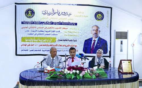 نظم مركز التدريب والتأهيل في المجلس الانتقالي الجنوبي، يوم الاحد، في كلية التربية في العاصمة عدن بالشراكة مع قسم اللغة العربية وبالتنسيق مع منسقية المجلس الانتقالي في الكلية، ندوة علمية ثقافية بمناسبة اليوم العالمي للغة العربية، بعنوان: "ثراء العربية لسانا وابداعا"، والتي تضمنت احتفاءً خاصاً بالشاعر والناقد والمترجم، الأستاذ الدكتور أحمد علي الهمداني، النائب السابق لرئيس جامعة عدن للدراسات والبحث العلمي، نائب رئيس المجلس الاستشاري الأعلى، مستشار رئيس الجامعة، والذي يعتبر احد اعلام الأدب والنقد في جامعة عدن.
