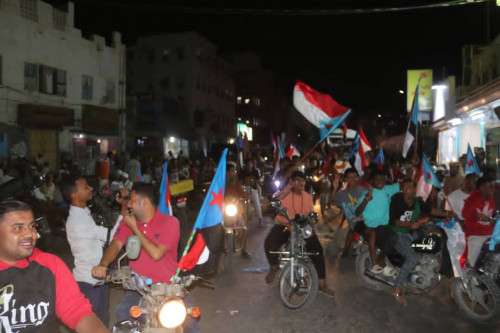 The young people held pictures of the martyr Omar Bazanbur, and the leader Aidarous Al-Zubaidi, President of the southern Transitional Council, and signals were written on the slogans demanding the removal of the first military district, and enabling Hadhramout Valley members the management of their own affairs.