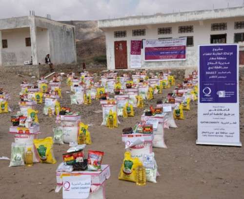بتمويل من قطر الخيرية برنامج التنمية الإنسانية لجمعية هائل سعيد انعم الخيرية تم تنفيذ مشروع السلة الغذائية الطارئ لقرى مهار ـ دار الدولة ـ لجيين .