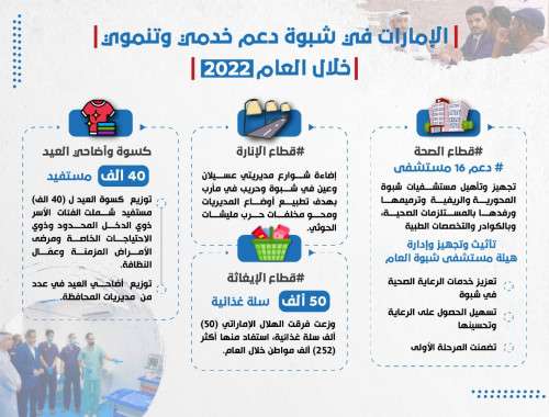 الإمارات تختتم عام 2022 بدعم 16 مستشفى ودشنت 2023 صيانة 21 منشاة مياه بشبوة