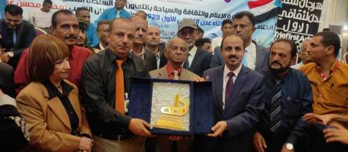 Under the patronage of the Agricultural Cooperative Credit Bank "CAC Bank", the Ministry of Information, Culture and Tourism honoured the great artist Mohammed Mohsen Ataroush with the "People's Artist" shield at the closing ceremony of Aden Winter Festival, which was held today at the Petra Hall at Coral Hotel in the capital Aden.