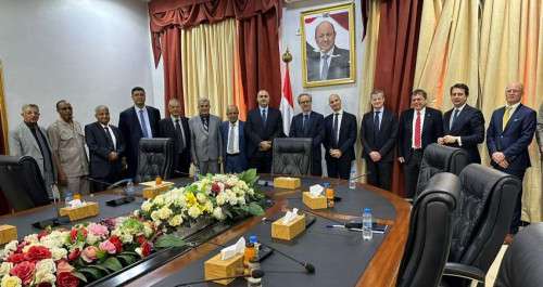 Today, Deputy Minister of Finance Hani Wahhab discussed in the capital, Aden, with a number of heads of European expeditions accredited to Yemen, headed by the European Union Ambassador to Yemen, Gabriel Vinals, the developments in the economic and financial conditions, and current reform efforts aimed at improving and achieving stability in the economic situation.