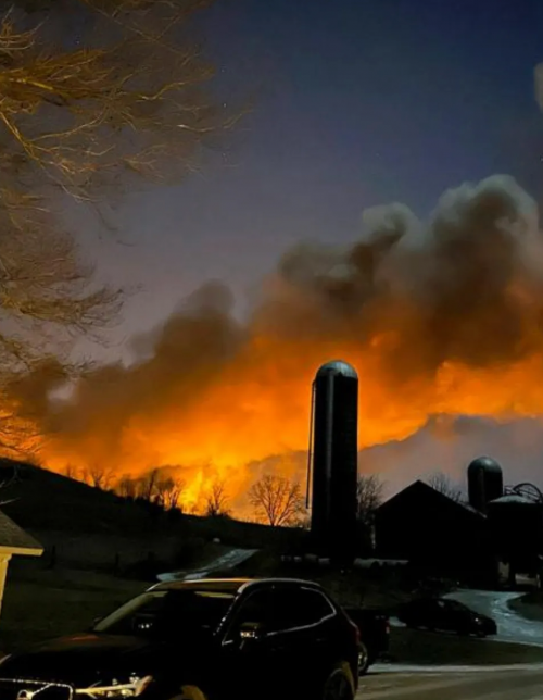 خرج قطار يحمل مادة كيميائية عن مساره في الولايات المتحدة، ما تسبب في نشوب حريق هائل وإجلاء مئات الأشخاص.
