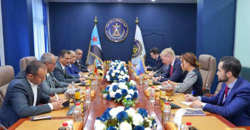 The meeting, which was attended by two members of the Presidium of the Transitional Council, Deputy Secretary-General Fadl Al-Jaadi, and the Dupety chairperson of the National Assembly, Lutfi Shatara, discussed developments on the internal level, as Lamlas affirmed the Southern Transitional Council's keenness to support and facilitate international efforts for the comprehensive political process to end the war and establish peace.
