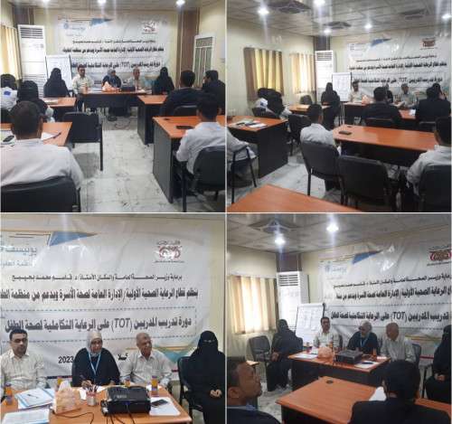 اختتمت بقاعة التدريب بمستشفى المكلا للأمومة والطفولة فعاليات الدورة التدريبية لتدريب المدربين TOT على الرعاية التكاملية لصحة الطفل التي نظمها قطاع الرعاية الصحية الأولية ، الإدارة العامة لصحة الأسرة وبدعم من منظمة اليونيسيف ، استمرت على مدى 6 أيام نفذها كل من المدربين الدكتور محفوظ رمضان علي باعوضان ، و الدكتورة أروى صالح بن معشب .