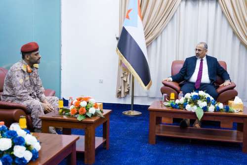The President, Commander Aidarous Qassem Al-Zubaidi, President of the Southern Transitional Council, Supreme Commander of the Southern Armed Forces, Deputy Chairman of the Presidential Leadership Council, met Major General Mohsen Ali Marsa' Al-Kazmi, Commander of the Al-Ghaydah Axis.