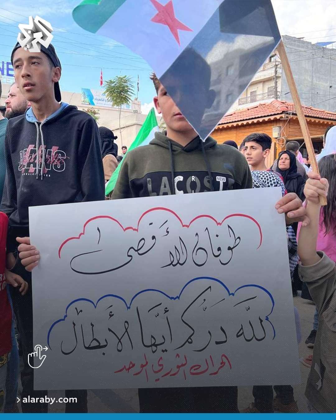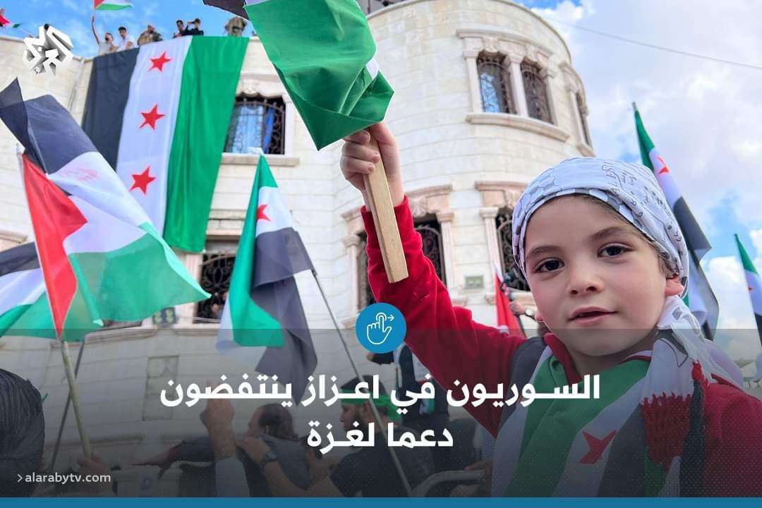 تظاهر المئات من أبناء مدينة اعزاز السورية بريف حلب الشمالي تضامنا مع أهالي غزة #طوفام_ الأقصى.