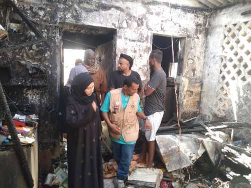It is worth noticing that President Aidarous Al-Zubaidi sent yesterday, Friday, a cable of condolence as a result of the massive fire that broke out in Al-Qaloa'a, causing the death toll of two women and the injury of a number of family members, and directed HARC to prioritize assistance and stand with the families affected to ameliorate their plight.