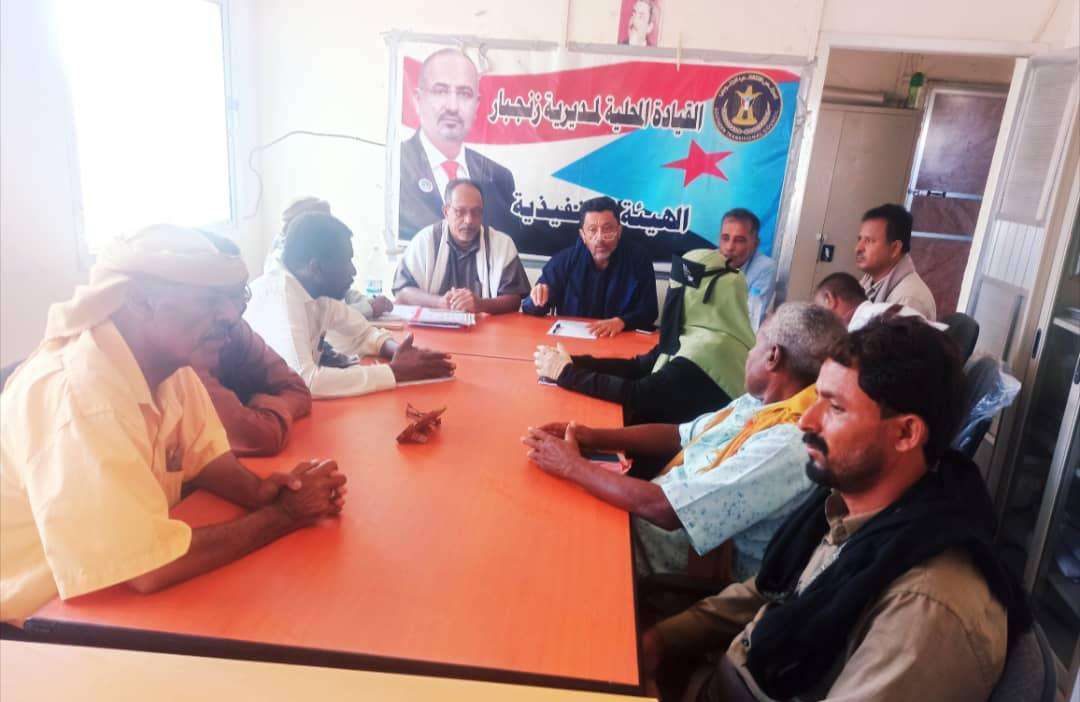 On Monday, Mr. Hassan Munser Ghaithan Al-Kazmi, Chairman of the Executive Body of the Local Leadership of the Southern Transitional Council in Abyan Governorate, chaired the periodic meeting of the Executive Body of the Transitional Council of Zanzibar district for the month of October, in the presence of the Chairman of the Body, Muhammad Saeed Al-Marqashi.