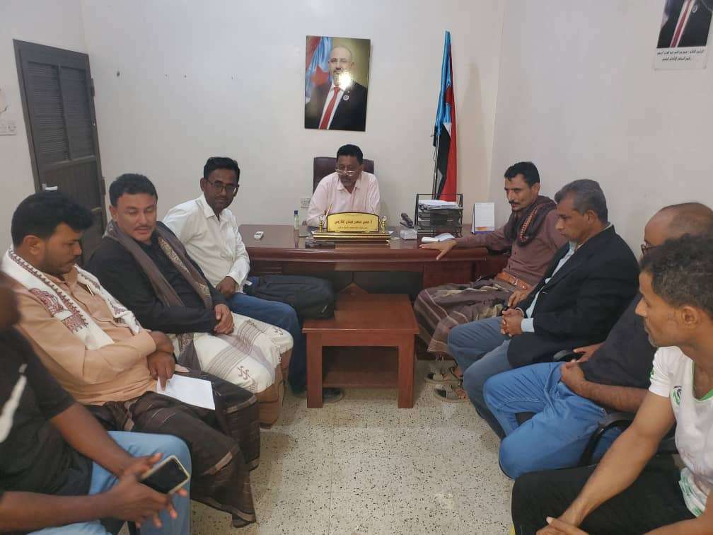 Mr. Hassan Munser Ghaithan Al-Kazmi, interim chief executive of Abyan Governorate, met today in his office in Zanzibar, the capital of the governorate, with the Sports Clubs Coordination in Khanfar District, headed by Sheikh Hussein Al-Hazil.