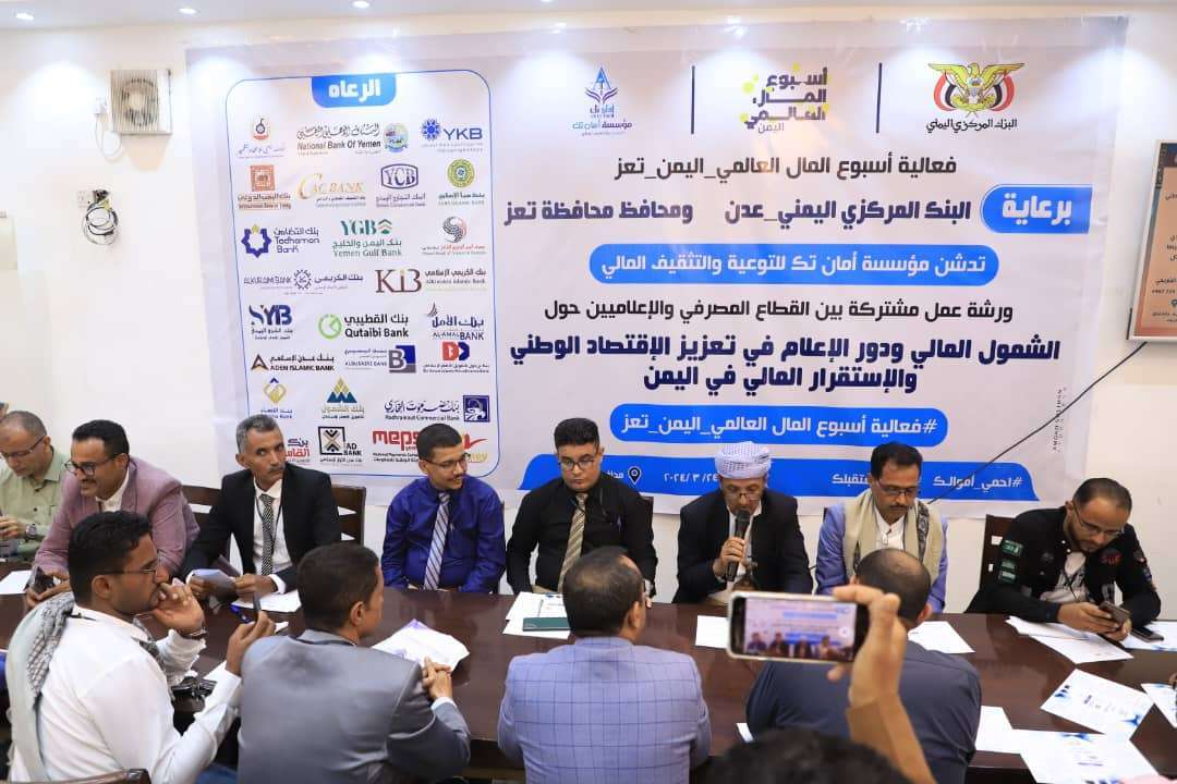CAC Bank, represented by its branch in Taiz, participated in a joint workshop between the banking sector and media professionals as part of the activities of Global Money Week, which takes place from March 18th to 24th. The workshop was held under the title: Financial Inclusion and the Role of Media in Enhancing the National Economy and Financial Stability in Yemen. It was sponsored by the Central Bank of Yemen and under the patronage of Nabil Shamsan, the Governor of Taiz, organized by Aman Tech Foundation for Financial Awareness and Education.