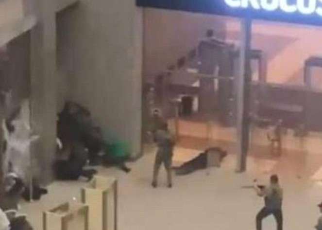 وثق مقطع فيديو تداولته منصات التواصل الاجتماعي، لحظة إطلاق النار داخل قاعة حفلات موسيقية قرب العاصمة موسكو والذي راح ضحيته 40 شخصا على الأقل وإصيب أكثر من مائة آخرين.