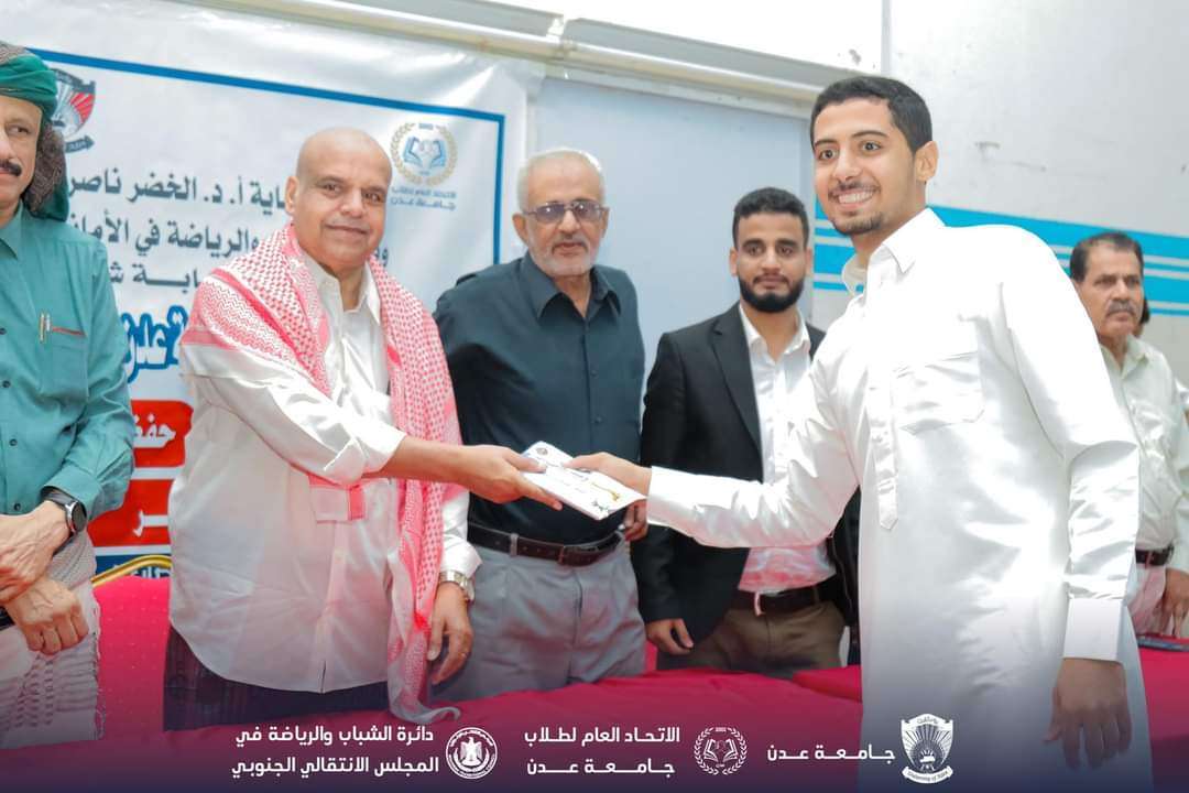 أقيم مساء اليوم الجمعة في قاعة ابن سيناء في كلية الطب بمديرية خور مكسر ، الحفل الختامي لتكريم اوائل الطلاب في المسابقة الثقافية والدينية ( حفظ المصحف _ حفظ نصف المصحف _ التلاوة والتجويد _القصة_ الشعر _ المقالة _ النصوص المسرحية ) ، وذلك في إطار فعاليات اسبوع الطالب الجامعي ال 24 ، التي تقام خلال شهر رمضان المبارك . والتي تحظى برعاية كريمة من قبل أ.د. الخضر ناصر لصور رئيس جامعة عدن ، ودائرة الشباب والرياضة في الأمانة العامة للمجلس الأنتقالي الجنوبي ، تحت إشراف نيابة شؤون الطلاب بجامعة عدن.