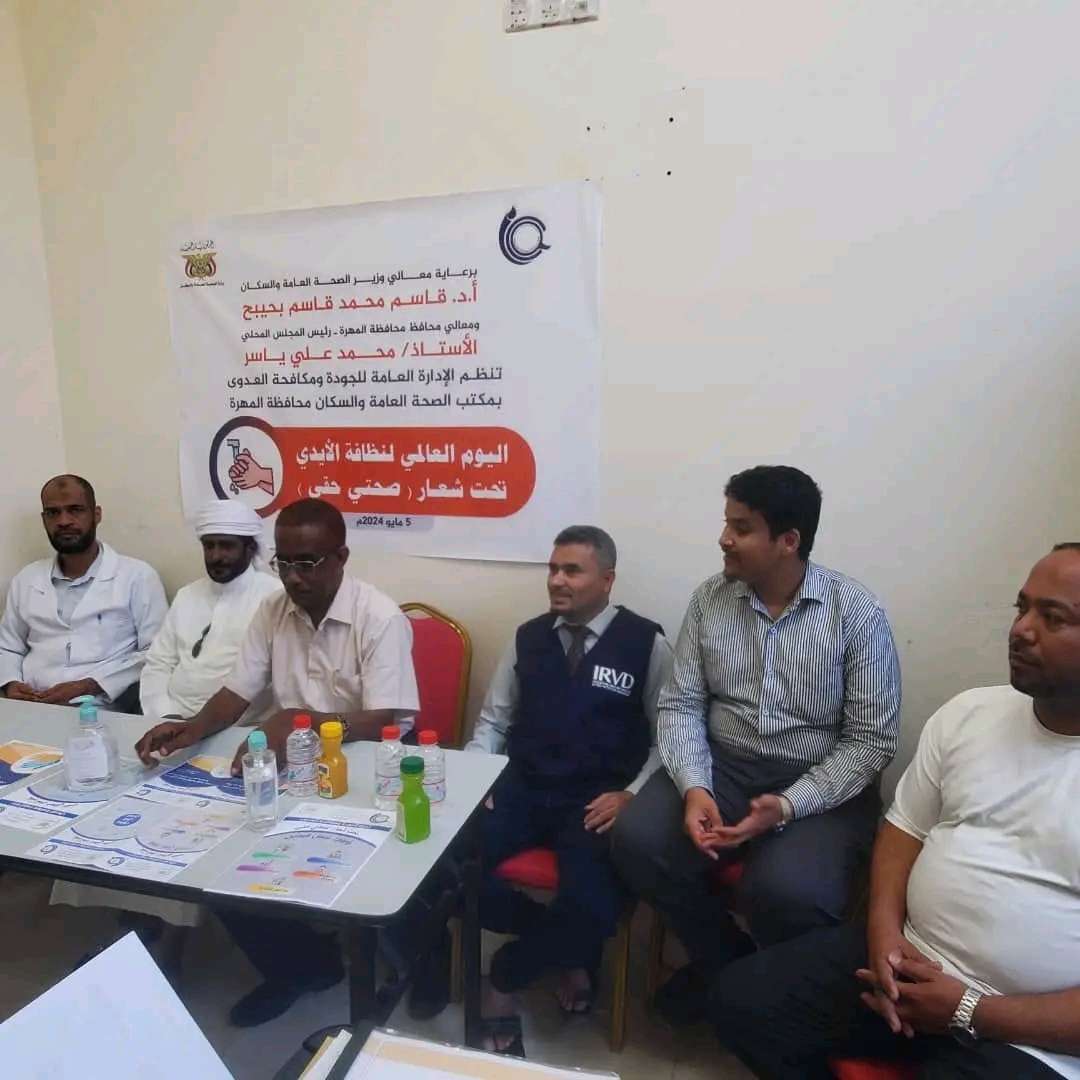 نظم مكتب وزارة الصحة العامة والسكان بمحافظة المهرة أمس ، فعالية صحية للاحتفاء باليوم العالمي لغسل اليدين الذي يصادف الـ 5 من مايو من كل عام بإشراف إدارة الجودة ومكافحة العدوى بالمحافطة وذلك برعاية كريمة من معالي وزير الصحة العامة والسكان أ.د قاسم محمد بحيبح ومعالي الأستاذ محمد علي ياسر محافظ محافظة المهرة.