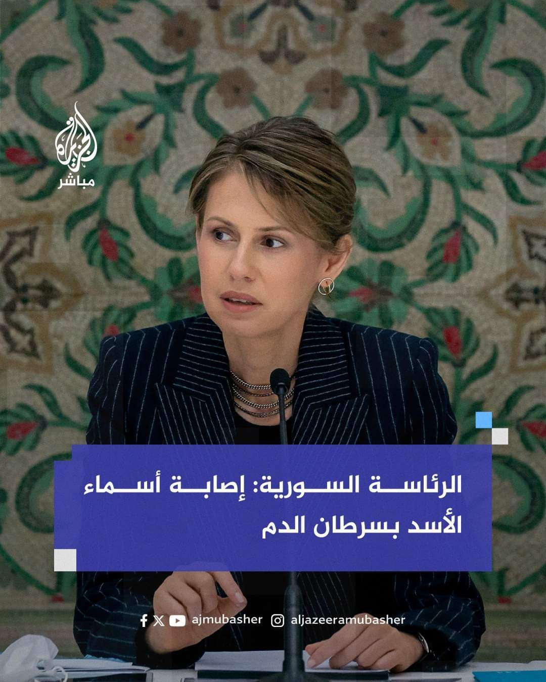 أعلنت الرئاسة السورية عن تشخيص إصابة زوجة الرئيس السوري أسماء_الأسد بمرض سرطان الدم.