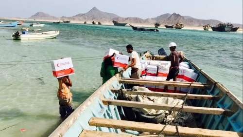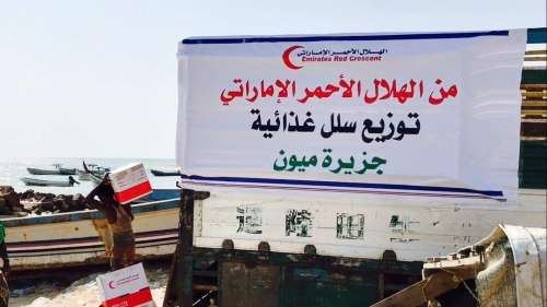 ضمن دعمها المتواصل للمناطق المحررة في اليمن، سيّرت هيئة الهلال الأحمر الإماراتي، صباح أمس كميات من المواد الإغاثية لجزيرة ميون.