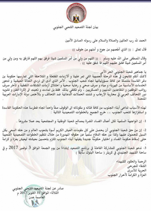 صادر عن لجنة التصعيد الشعبي الجنوبي
