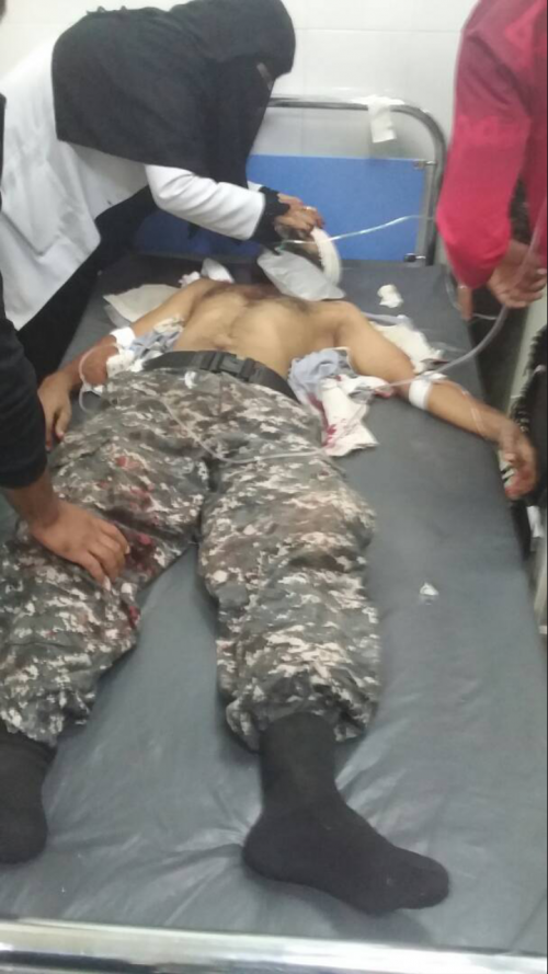 أشرف وزير الصحة د ناصر باعوم على استقبال 15 جريحاً وشهيدين في مركز 22 مايو الجراحي اثر انفجار سيارة مفخخة يقودها انتحاري على مقر منشآت الحزام الامني في عبدالعزيز .