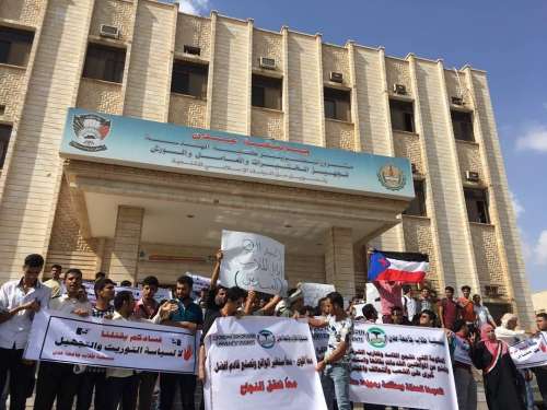 واستنكر الطلاب هذه السياسة التي تمارس من قبل حكومة الشرعية ضد المواطن ومعاقبته بكل أحتياجات الحياة المعدومة في العاصمة عدن و زيادة فساد حكومة الشرعية.